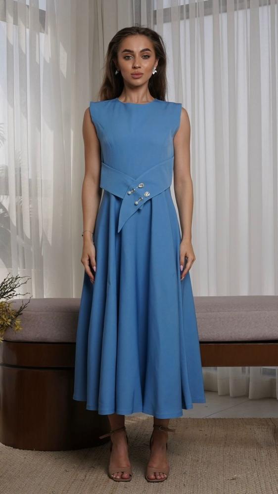 فستان صيفي بأكمام قصيرة وحزام متصل