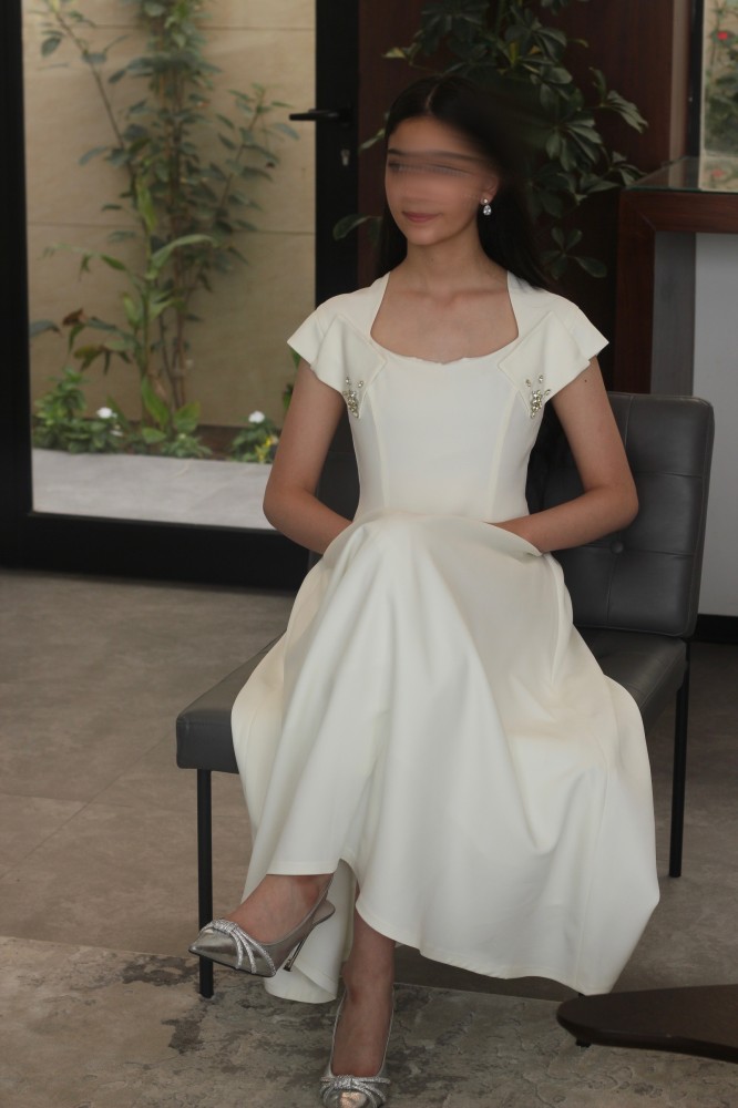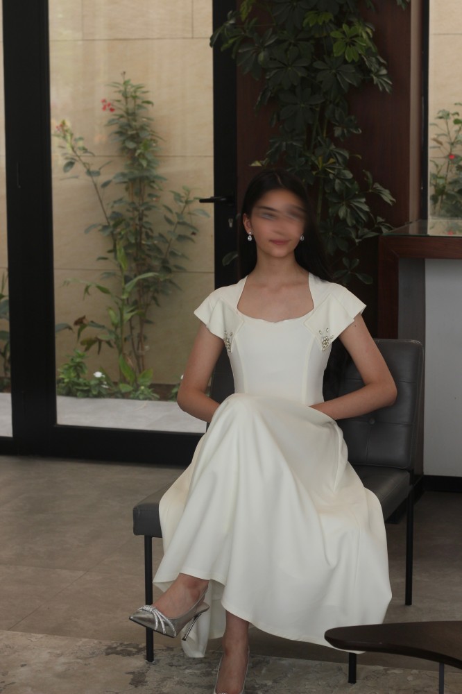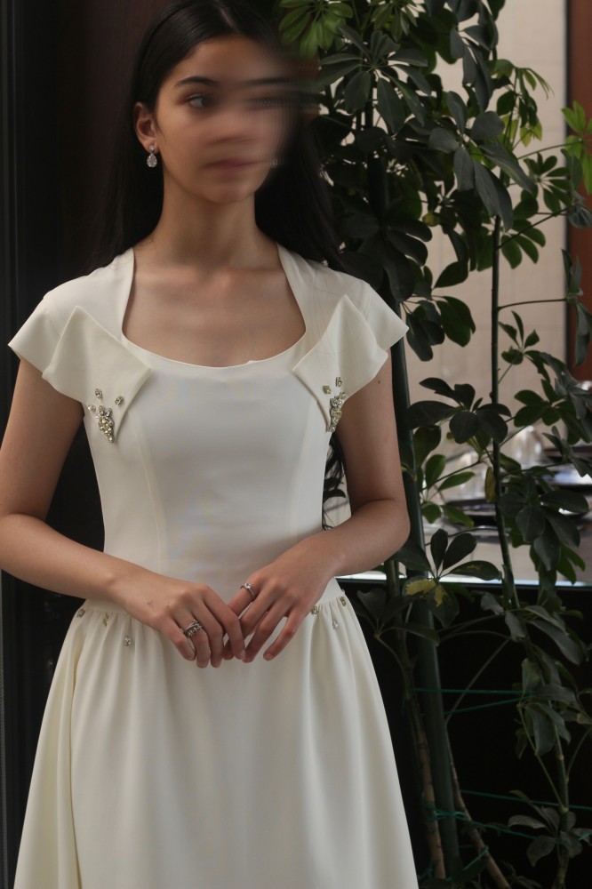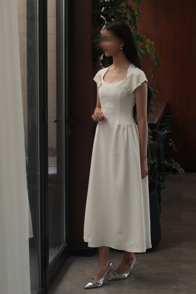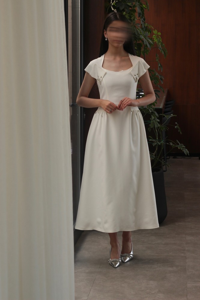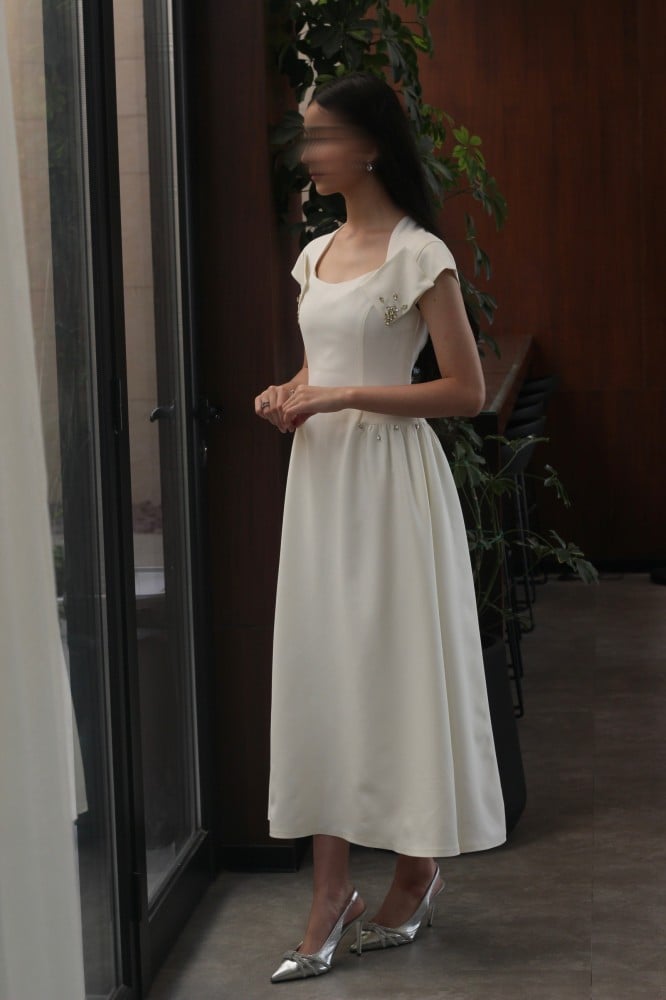 فستان صيفي بأكمام قصيرة مزين بالكرستالات
