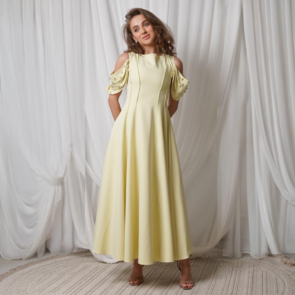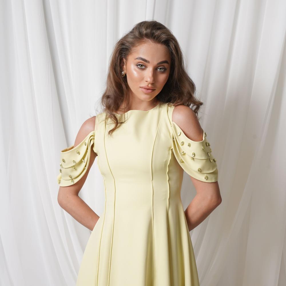 • الأكمام: مفتوحة (cold shoulder) بلمسة أنثوية